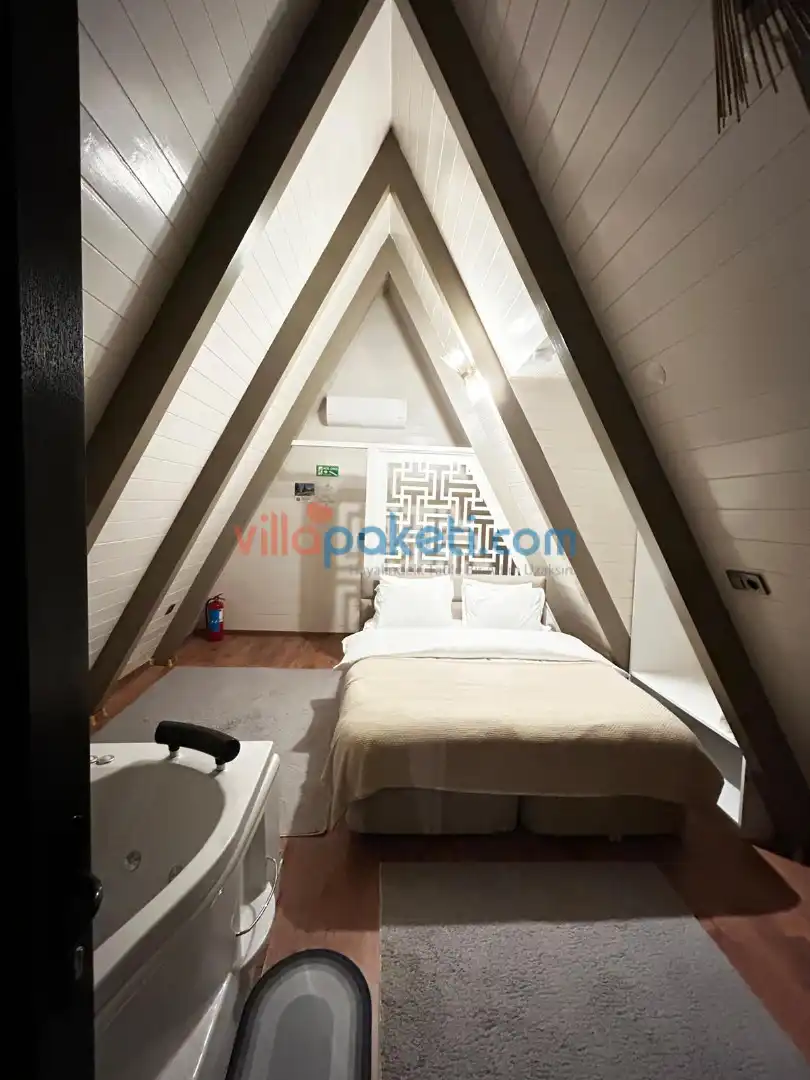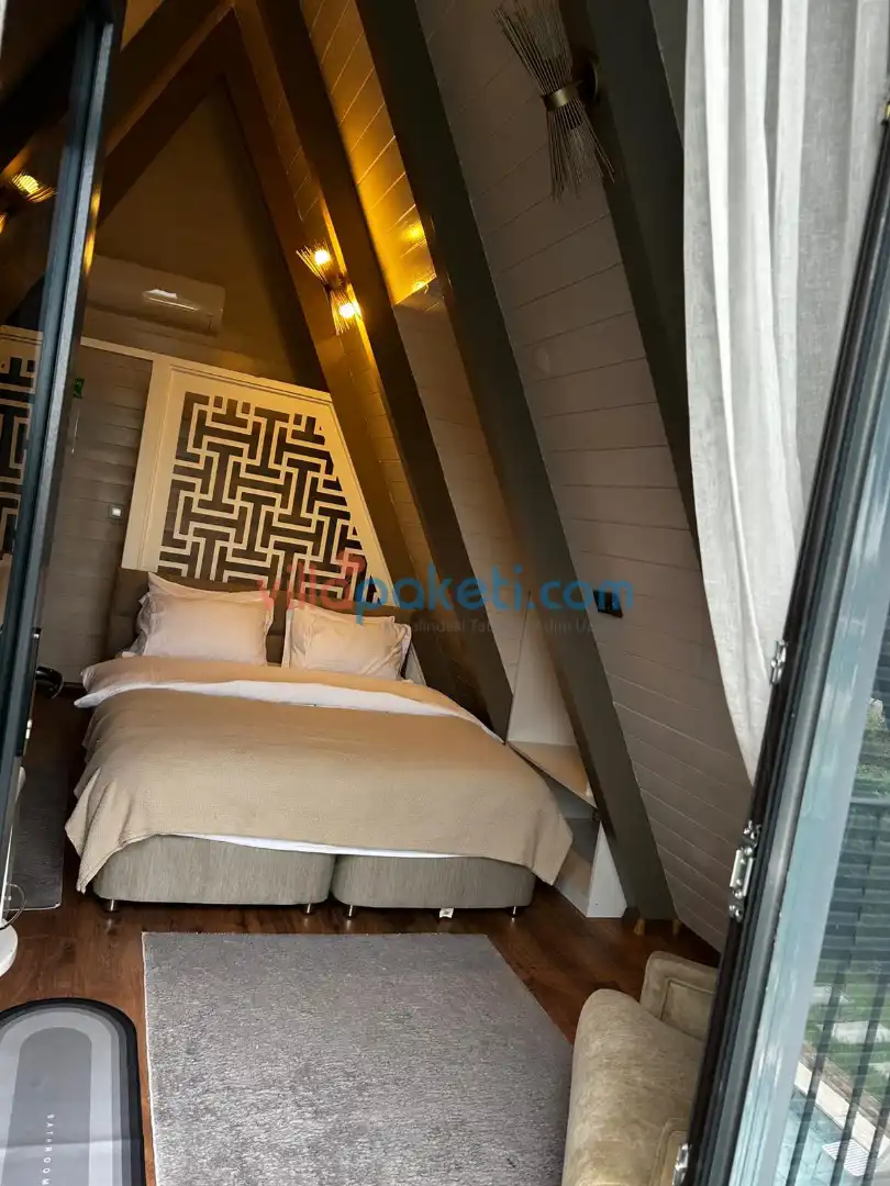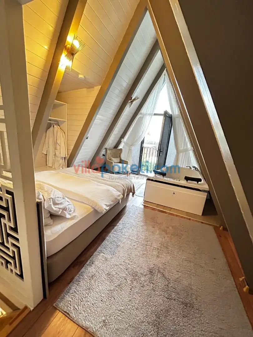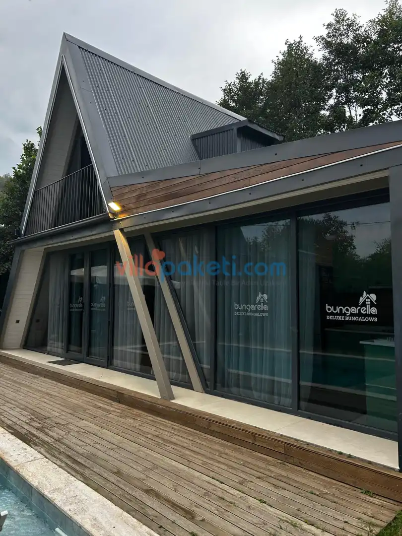 Yan yana konumlanan Bungalov Latte ve Bungalov Mocha, modern tasarımı, özel havuzu, jakuzisi ve doğayla iç içe atmosferiyle çiftler ve aileler için mükemmel bir konaklama deneyimi sunuyor.