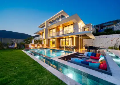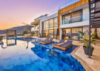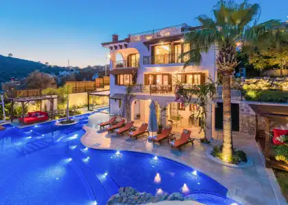 Kalkan'ın Ortaalan mevkiinde, 8 kişilik lüks Villa Victoria'da unutulmaz bir tatil sizi bekliyor! Isıtmalı havuz, sauna, hamam ve sinema odası ile donatılmış, deniz manzaralı özel villamızda yerinizi ayırtın.