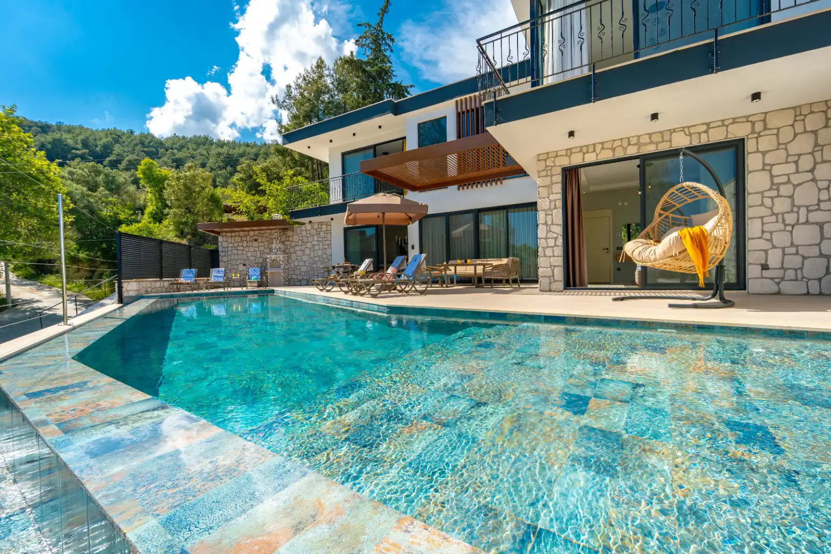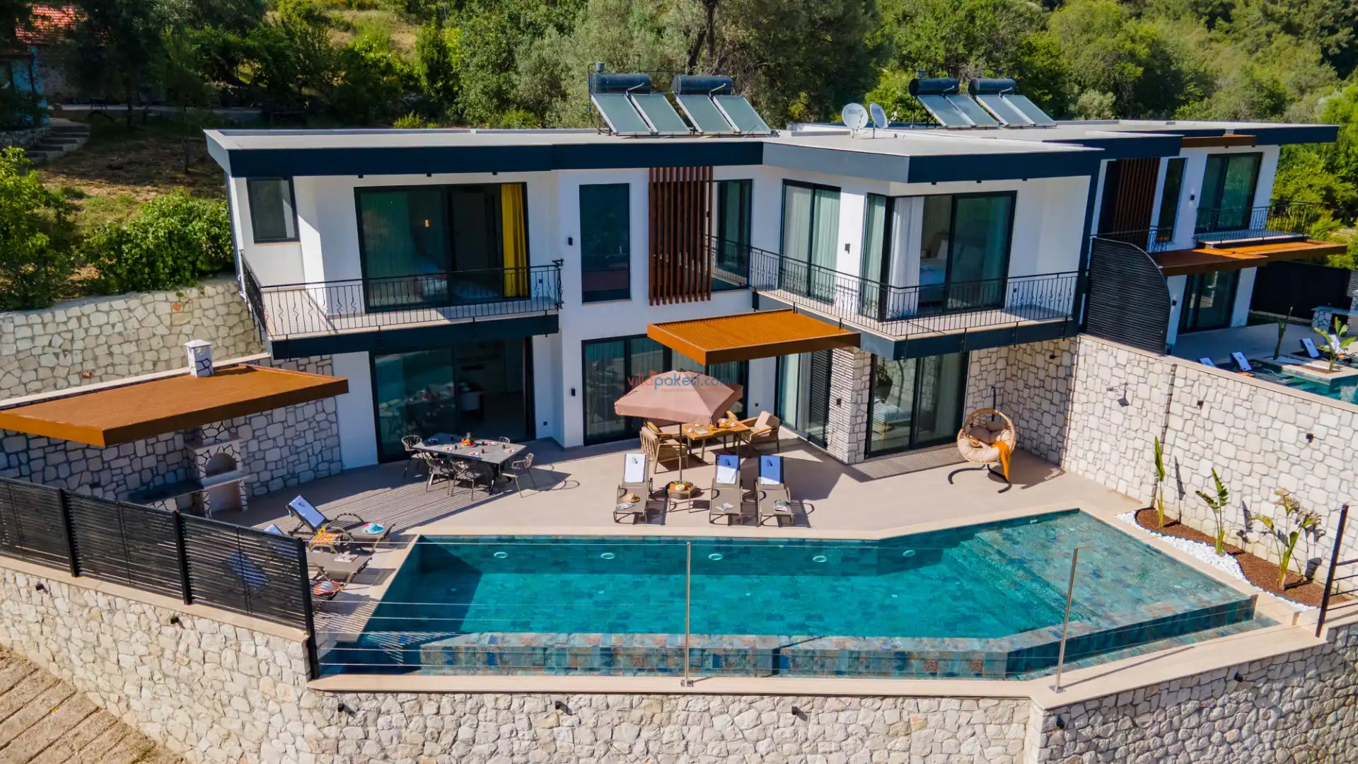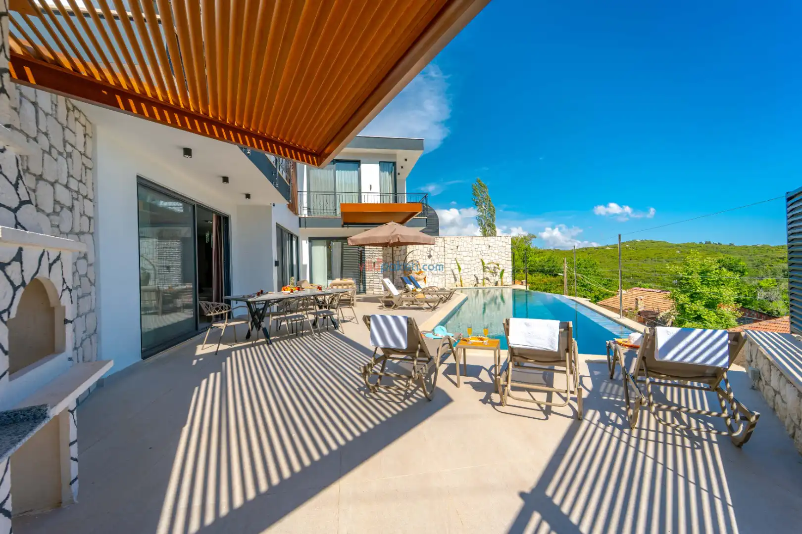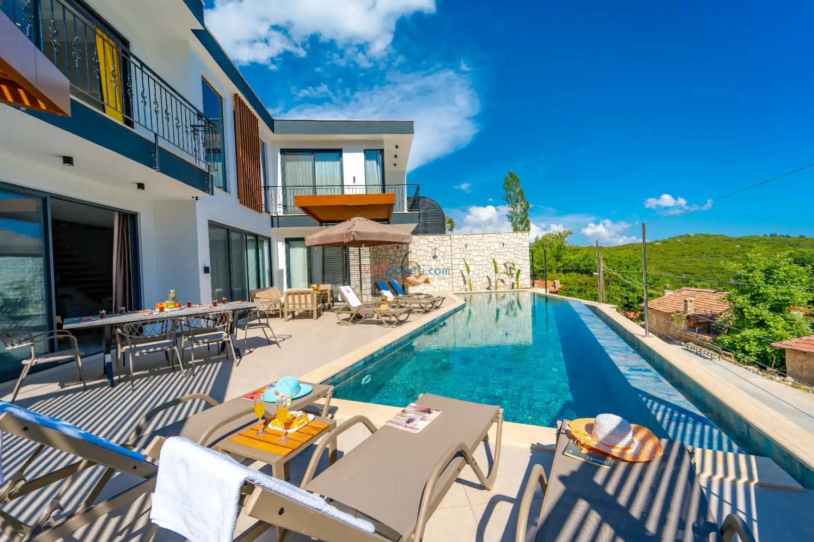 Doğa manzaralı, sessiz ve sakin bir konumda bulunan Villa Akbulut serisi, hem balayı çiftleri hem de geniş aileler için konforlu bir tatil fırsatı sunar. Kaş’ta muhafazakar villa arayanlar, jakuzili ve lüks bir konaklama deneyimi yaşamak isteyenler için mükemmel bir tercihtir.