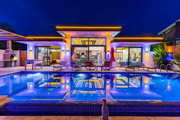 Villa Alperen, Antalya'nın Kaş ilçesinde, Kalkan/Sarıbelen mevkiinde, huzur ve mahremiyet arayanlar için mükemmel bir seçim. Kendi evinizin rahatlığında, doğanın içinde bir tatil deneyimi yaşamak istiyorsanız, Villa Alperen sizleri bekliyor. Çocuklu aileler için düşünülmüş olan çocuk havuzu, minik misafirlerimizin de tatilden keyif almasını sağlıyor. Geniş bahçe alanı, ailenizle birlikte vakit geçirmek ve çocuklarınızın güven içinde oyunlar oynaması için mükemmel bir ortam sunuyor. Villa Alperen'de geçireceğiniz her an, sakinliği, konforu ve lüksü bir arada yaşama fırsatı sunuyor. Bu özel villa, huzur dolu bir tatilin, ailece keyifli vakit geçirmenin ve doğanın içinde yenilenmenin adresi.