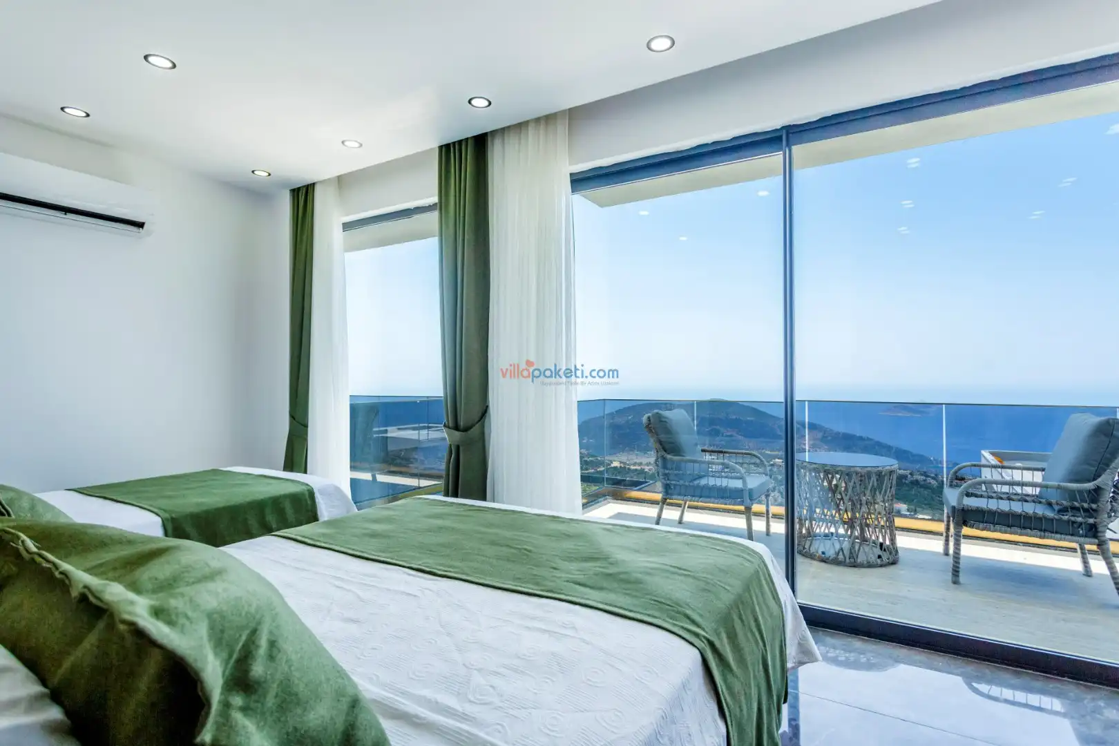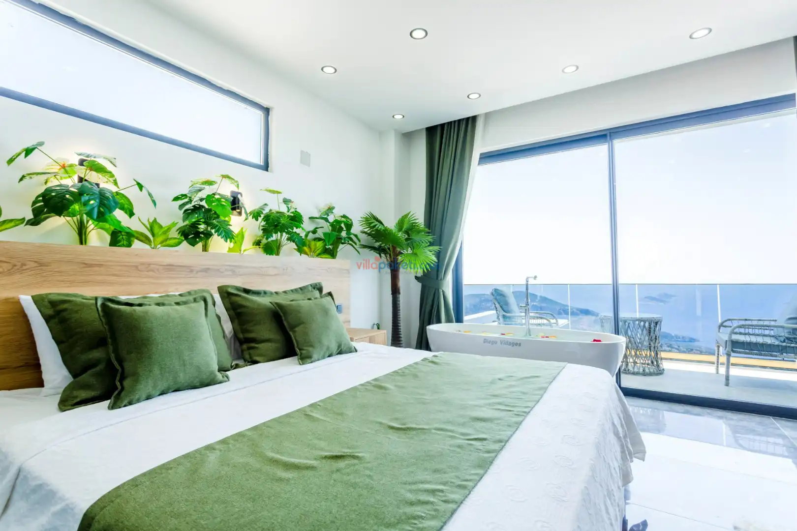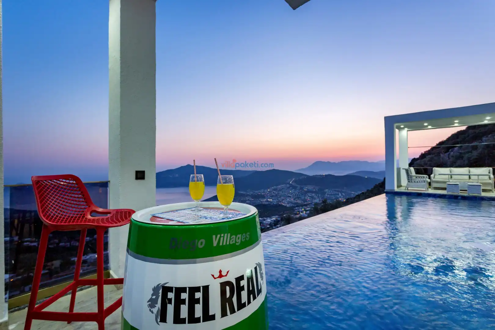 Villa Diego Kalkan merkeze yaklaşık 5 kilometrelik bir mesafede yer alan tatil villası seçeneğidir. Havuz alanı yabancı gözlerden izole ve nefes kesen bir deniz manzarasına sahiptir. Aynı şekilde üst katta bulunan 2 yatak odası deniz ve şehir manzarasına hakimdir. Yatak odalarından biri içinde, şık bir küvet de yer alan ana yatak odasıdır. Diğer yatak odasında ise bir adet çift kişilik yatak, bir adet tek kişilik yatak yer alır. 5 kişilik kapasite bu şekilde sağlanmış olur.