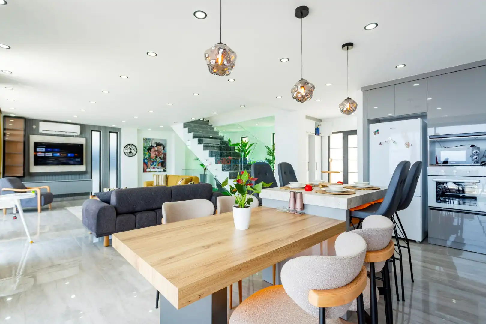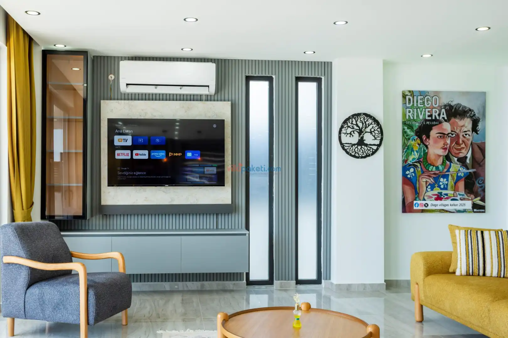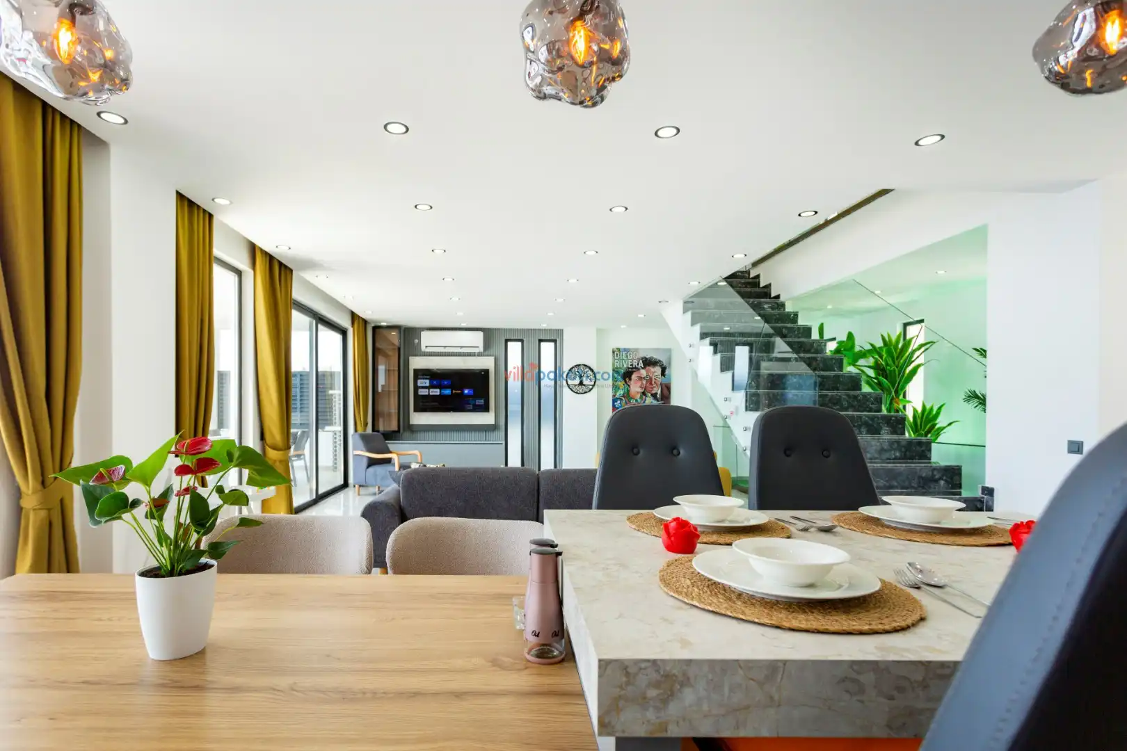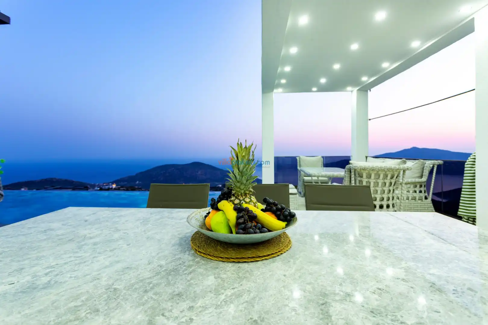 Villa Diego Kalkan merkeze yaklaşık 5 kilometrelik bir mesafede yer alan tatil villası seçeneğidir. Havuz alanı yabancı gözlerden izole ve nefes kesen bir deniz manzarasına sahiptir. Aynı şekilde üst katta bulunan 2 yatak odası deniz ve şehir manzarasına hakimdir. Yatak odalarından biri içinde, şık bir küvet de yer alan ana yatak odasıdır. Diğer yatak odasında ise bir adet çift kişilik yatak, bir adet tek kişilik yatak yer alır. 5 kişilik kapasite bu şekilde sağlanmış olur.
