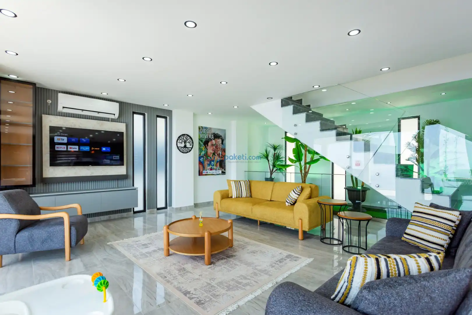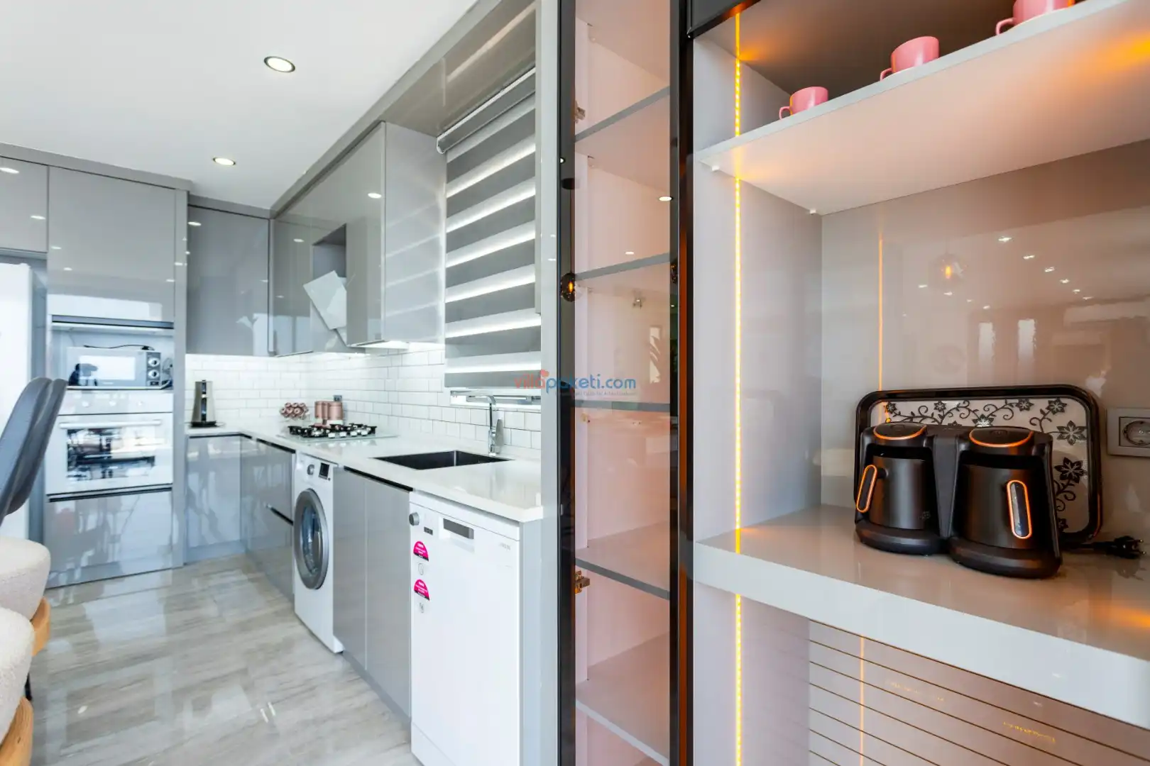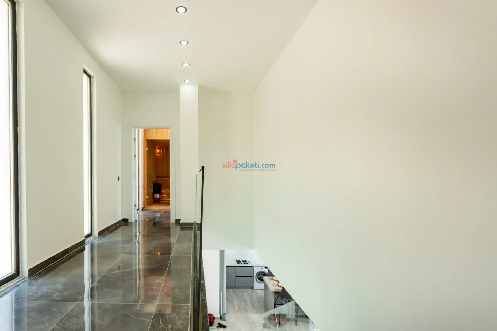 Modern mobilyalarla döşenmiş zemin kat; amerikan mutfak, kat bahçesi salondan oluşur.