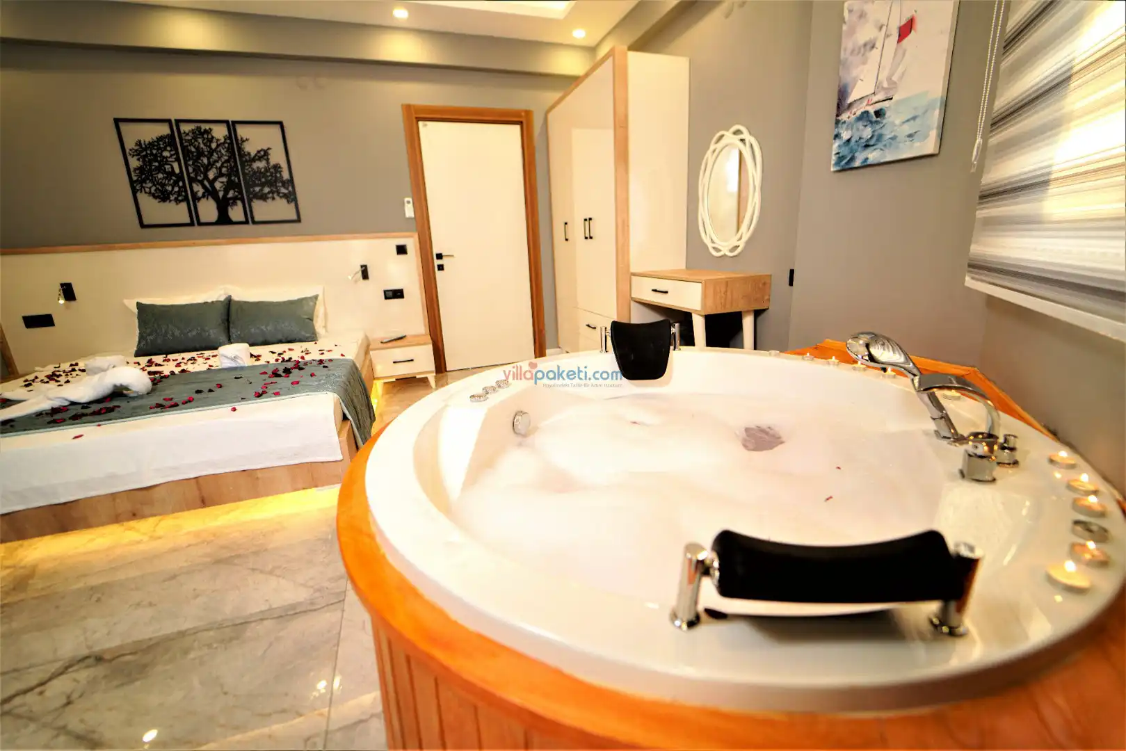 Fethiye Foça Mevkiinde, 4 Yatak Odalı, 8 Kişilik, Geniş bahçeli, Jakuzili, Saunalı yazlık villa