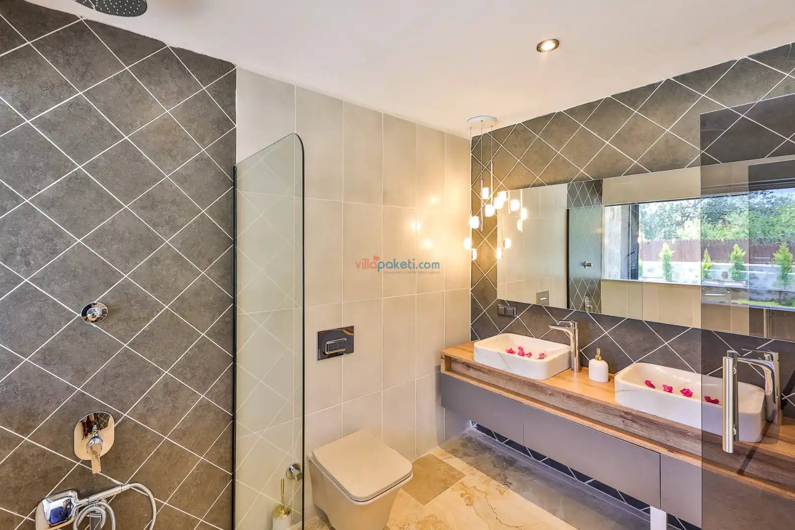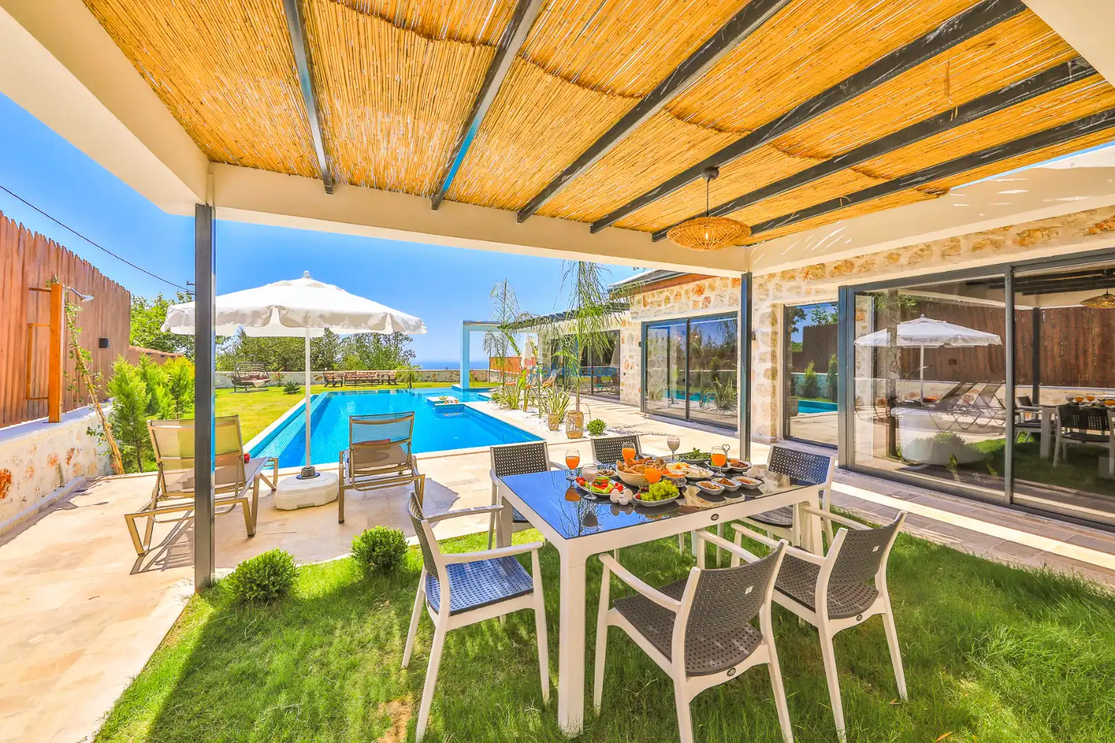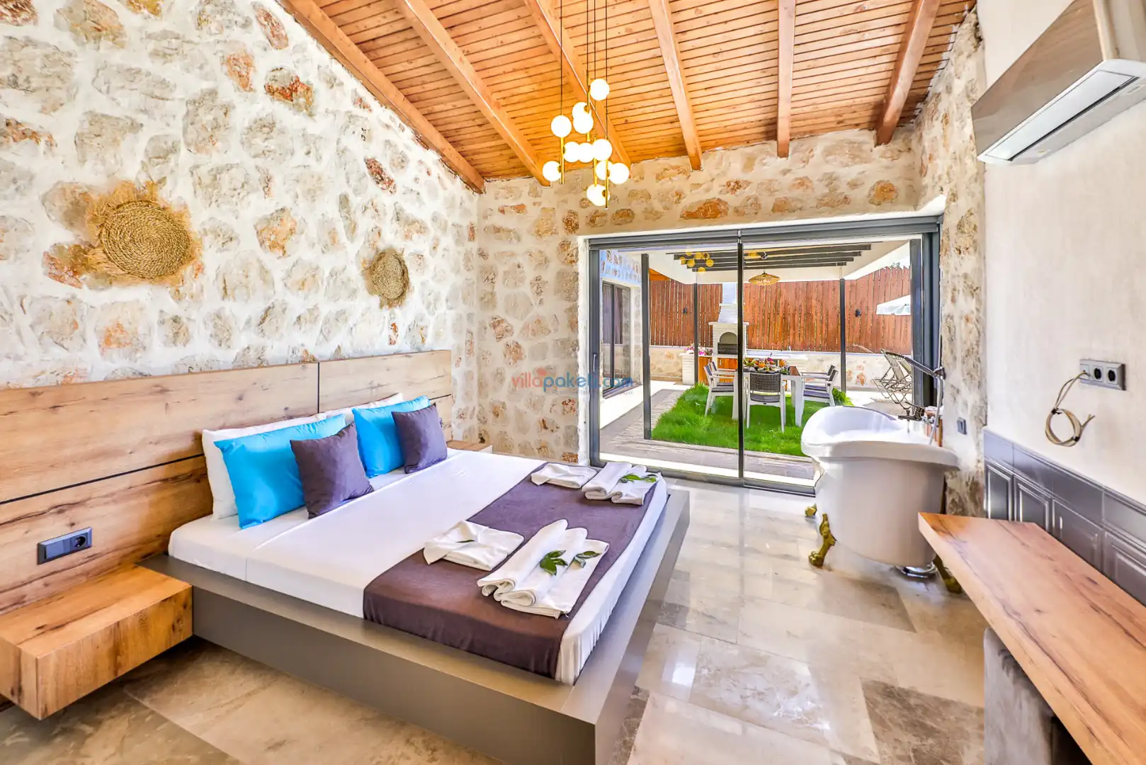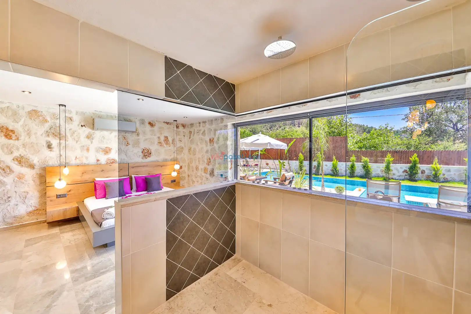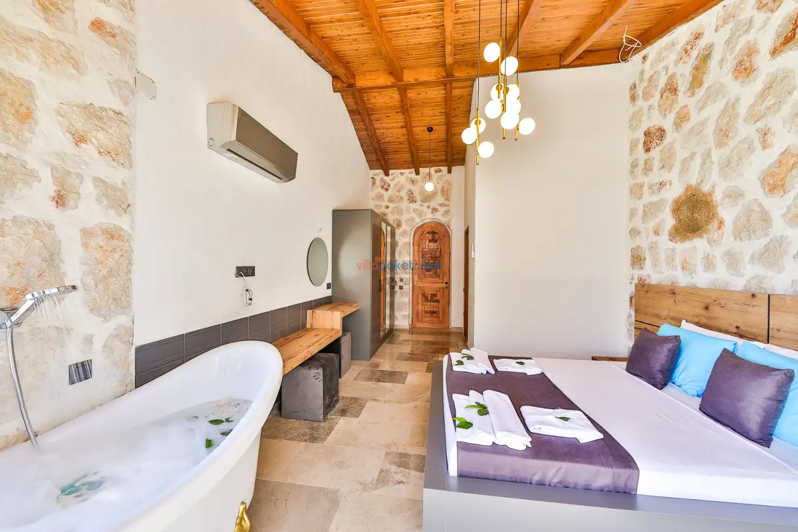 Villa Tan Üzümlü-Kalkan bölgesinde konumlanmış 3 yatak odalı ve 6 kişilik kapasitesiyle aileniz ve arkadaş grubunuz için ideal bir konaklama seçeneğidir. Bu lüks villa, tatiliniz boyunca tam konfor sağlar: hem açık hem kapalı ısıtmalı havuz, jakuzi, küvet, özel hamam ve sauna ile tüm yıl kullanıma uygun bir tatil imkanı sunar. Doğa ile iç içe, tamamen korunaklı yapısı sayesinde muhafazakâr aileler ve balayı çiftleri için güvenli ve mahrem bir tatil deneyimi sağlar. Modern dekorasyonu, yüksek kaliteli mobilyaları ve özenle tasarlanmış odalarıyla Villa Tan , lüks ve konforu bir araya getirir. Kalkan Üzümlü bölgesinin sakin atmosferinde, doğa ve deniz yakınlığıyla unutulmaz anılar biriktireceğiniz bu villa, tatilinizi ayrıcalıklı bir deneyime dönüştürmek için sizi bekliyor.