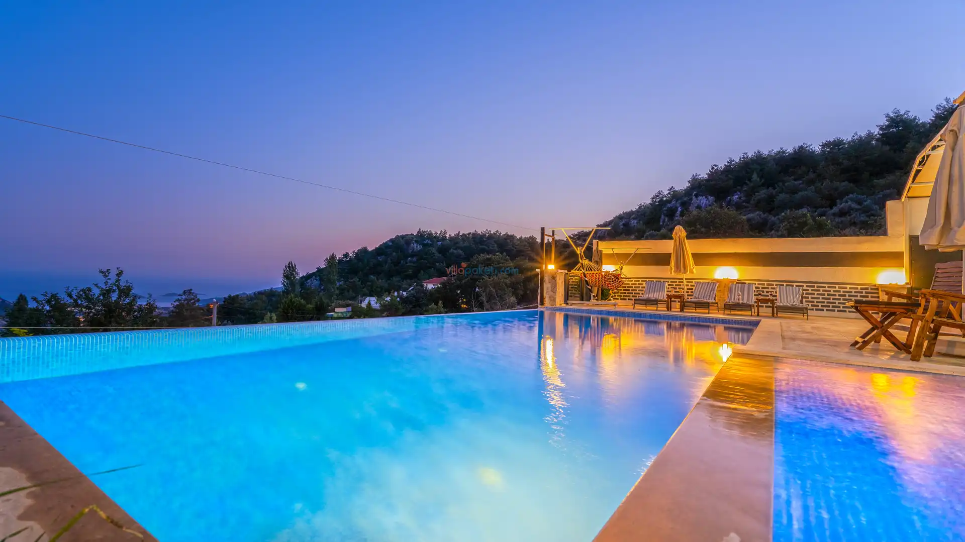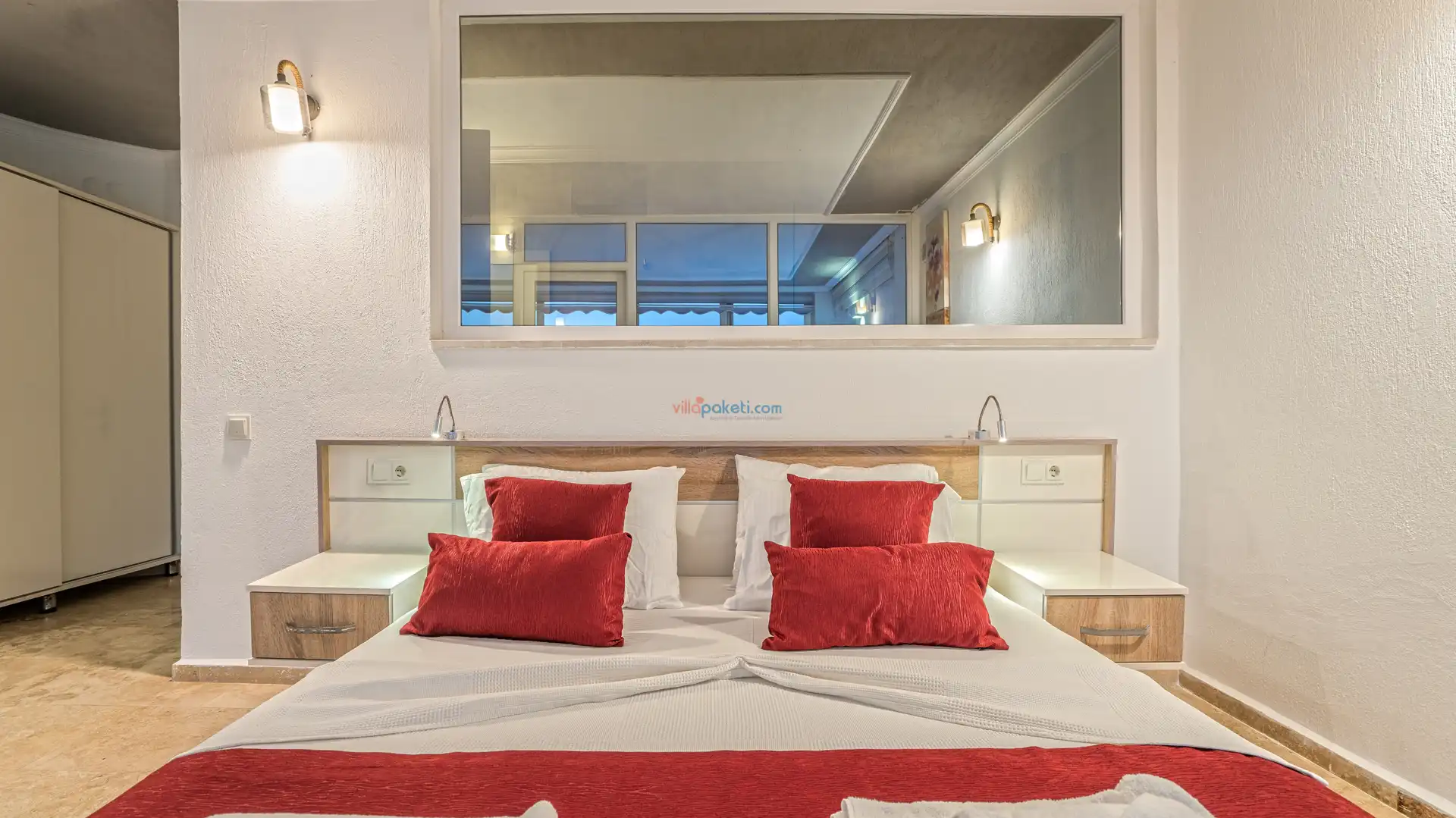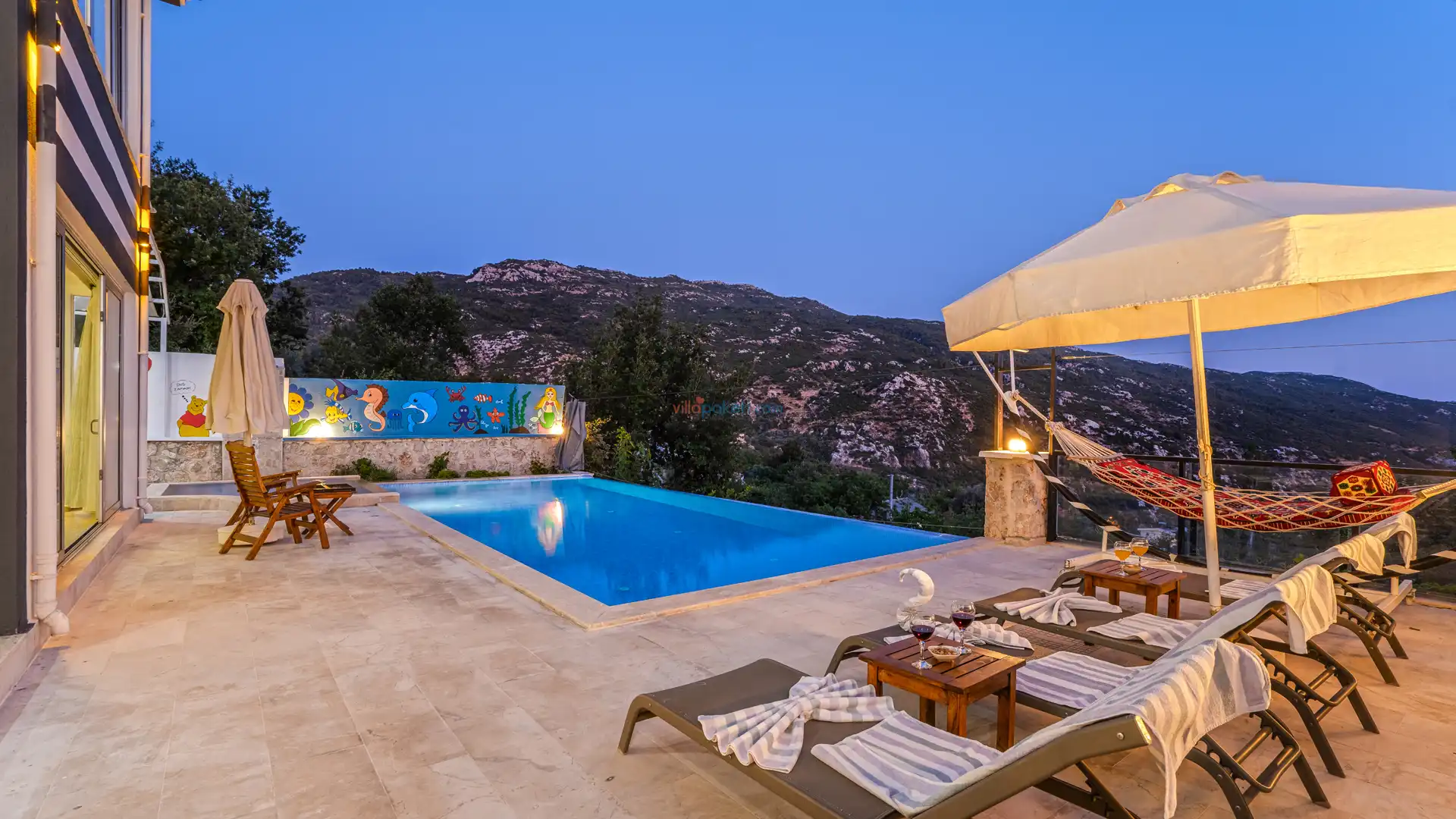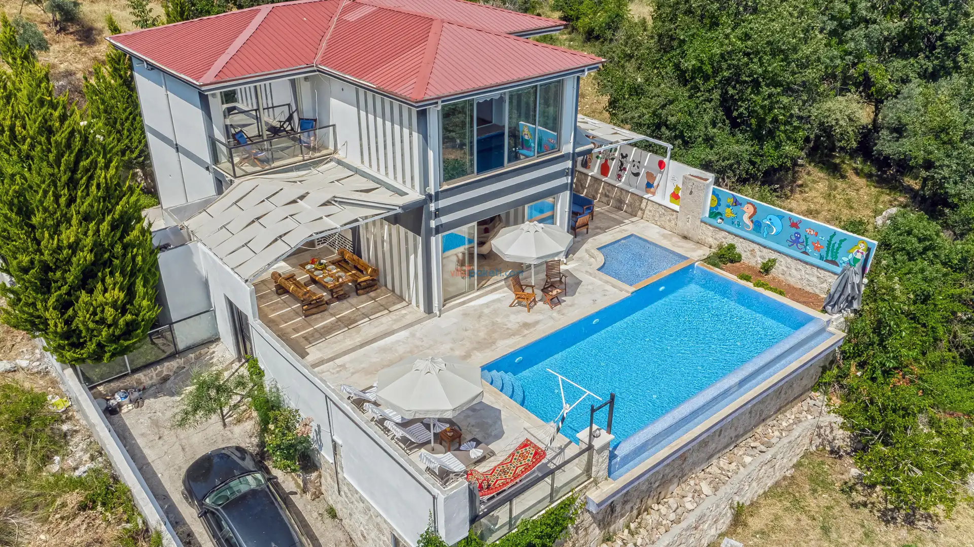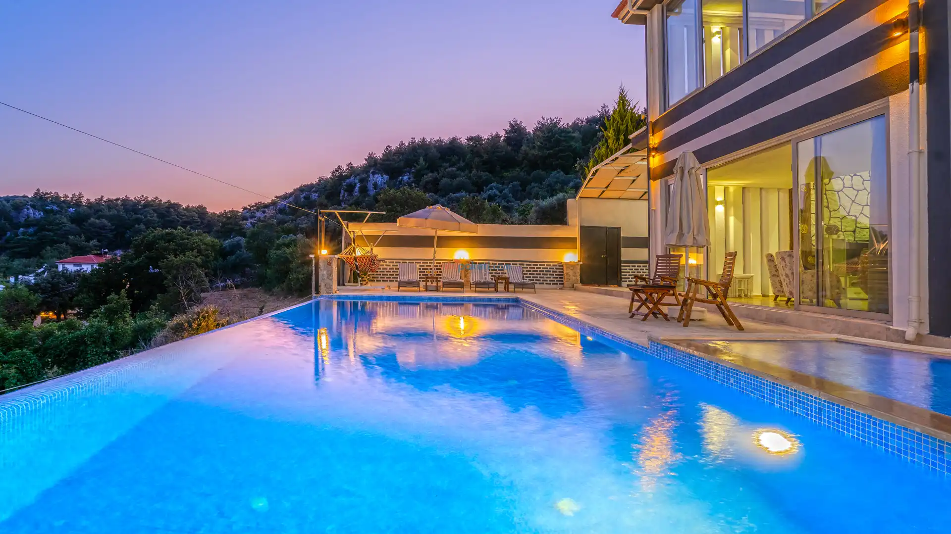 Doğayla iç içe, huzurlu ve lüks bir tatil arayanlar için tasarlanmış bu özel villa; 4 geniş yatak odasıyla 8 kişilik konaklama kapasitesi sunar. Geniş aileler ya da arkadaş grupları için ideal olan villamızda hem açık hem de kapalı havuz bulunmaktadır. Bu sayede dört mevsim konforlu bir şekilde havuz keyfi yaşanabilir.