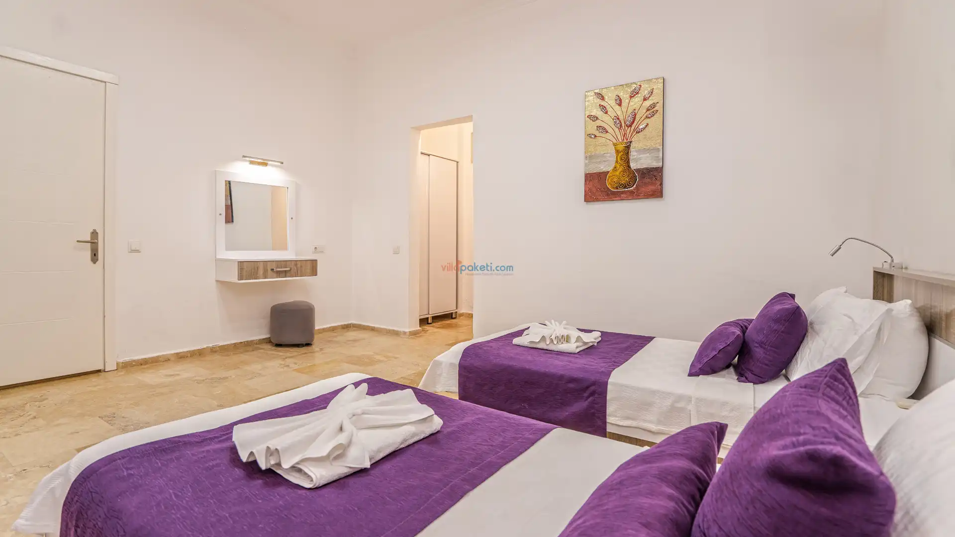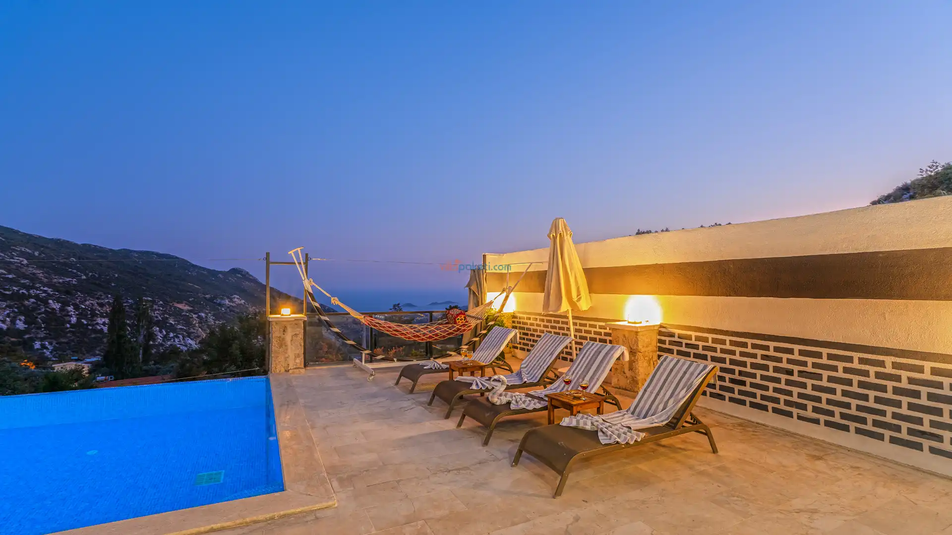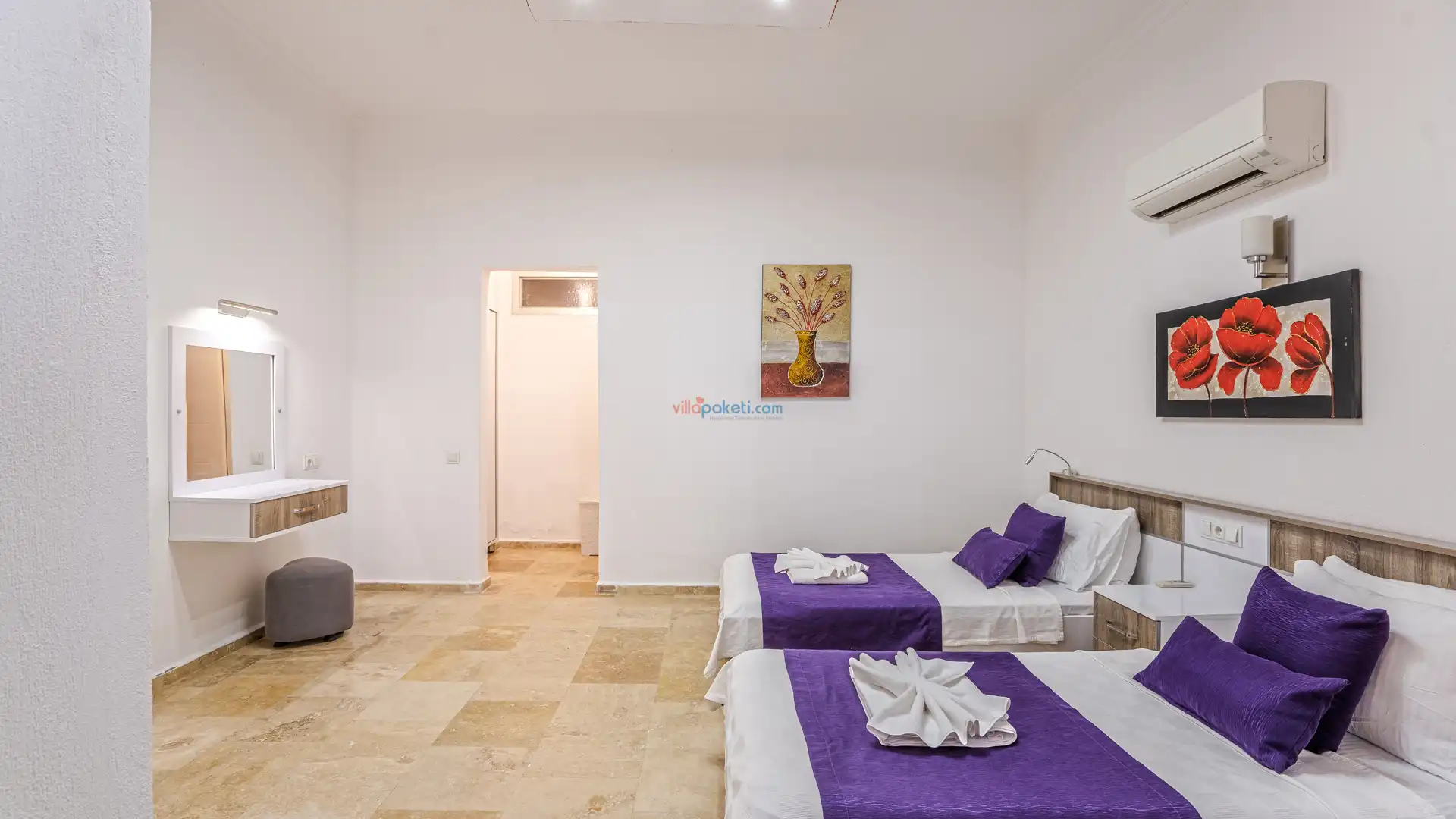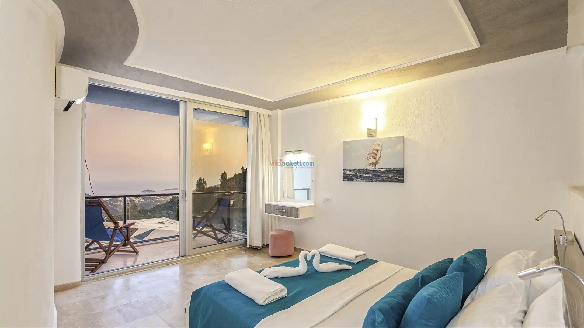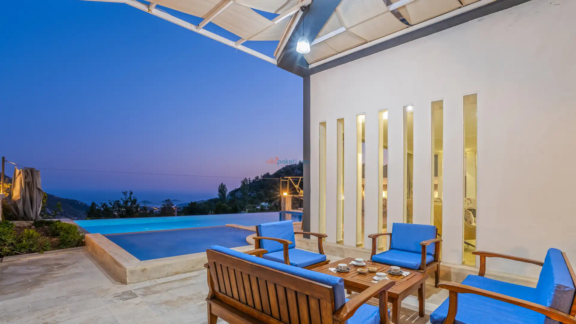 Doğayla iç içe, huzurlu ve lüks bir tatil arayanlar için tasarlanmış bu özel villa; 4 geniş yatak odasıyla 8 kişilik konaklama kapasitesi sunar. Geniş aileler ya da arkadaş grupları için ideal olan villamızda hem açık hem de kapalı havuz bulunmaktadır. Bu sayede dört mevsim konforlu bir şekilde havuz keyfi yaşanabilir.