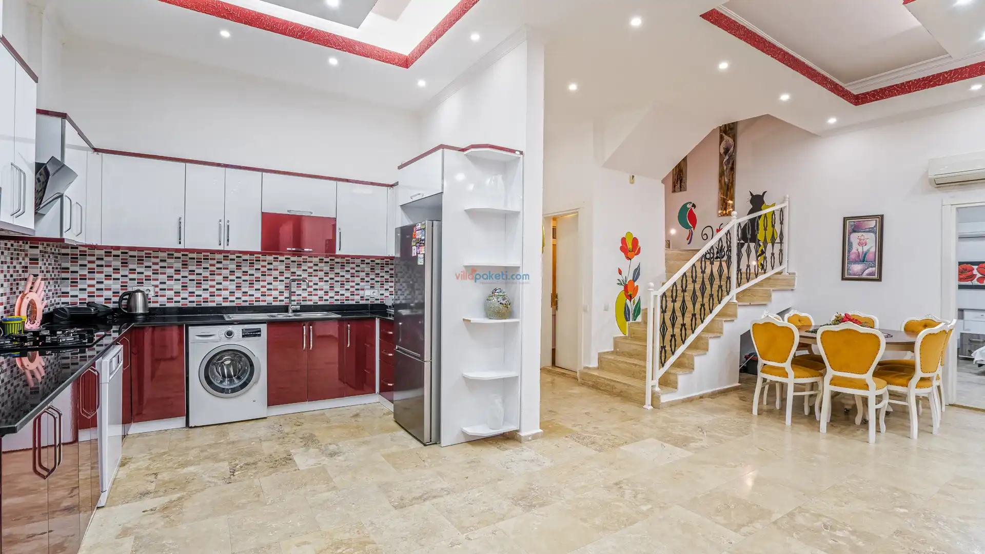Modern mimarisi ve zevkli iç tasarımıyla dikkat çeken villada tam donanımlı bir mutfak, ferah bir salon, her odada klima ve özel banyolar mevcuttur. Geniş bahçesi, barbekü alanı ve güneşlenme terası ile açık havada keyifli vakit geçirme imkânı sunar.